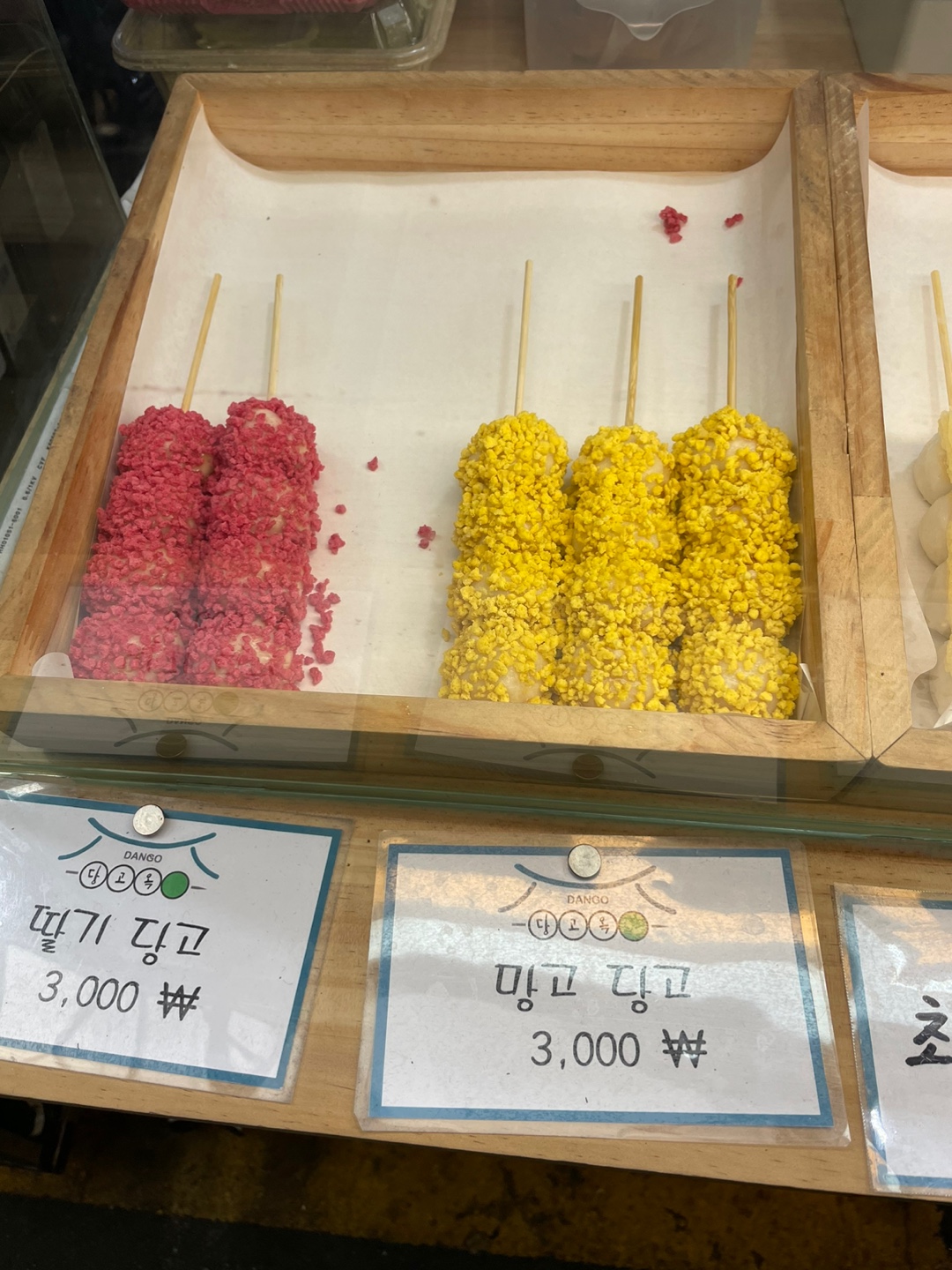 - 망고당고: 보기도 이쁜데 맛도 있는 당고다, 망고라고 해서 달달달 한데 또 그냥 달달달 하지는 않은 그런 맛이다.