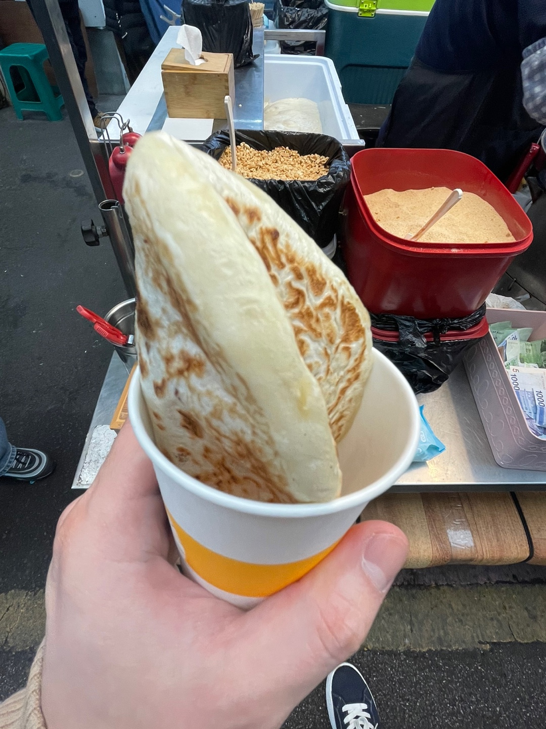 - 할매호떡: 호떡 쫠깃 쫄깃 기름기는 하나두 없고, 그 남대문 호떡은 기름 너무많은데, 여기는 담백 그자체다
